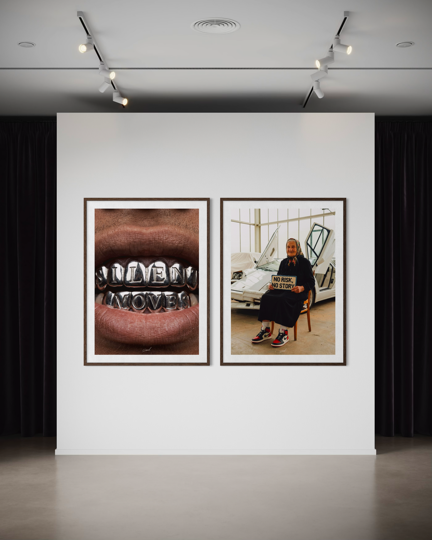 Dieses Fine Art Print nutzt Nähe als Verstärker. Der extreme Bildausschnitt zwingt zur Auseinandersetzung. Metallischer Glanz steht im Kontrast zur Verletzlichkeit der Haut. Das Werk erzählt von Selbstbehauptung, vom Anspruch auf Bedeutung und davon, den eigenen Moment nicht abzuwarten sondern ihn sichtbar zu machen.