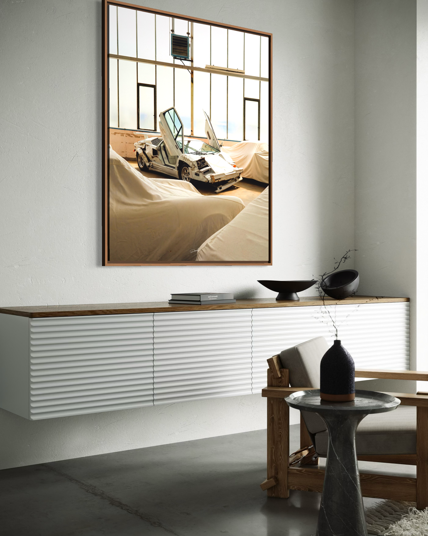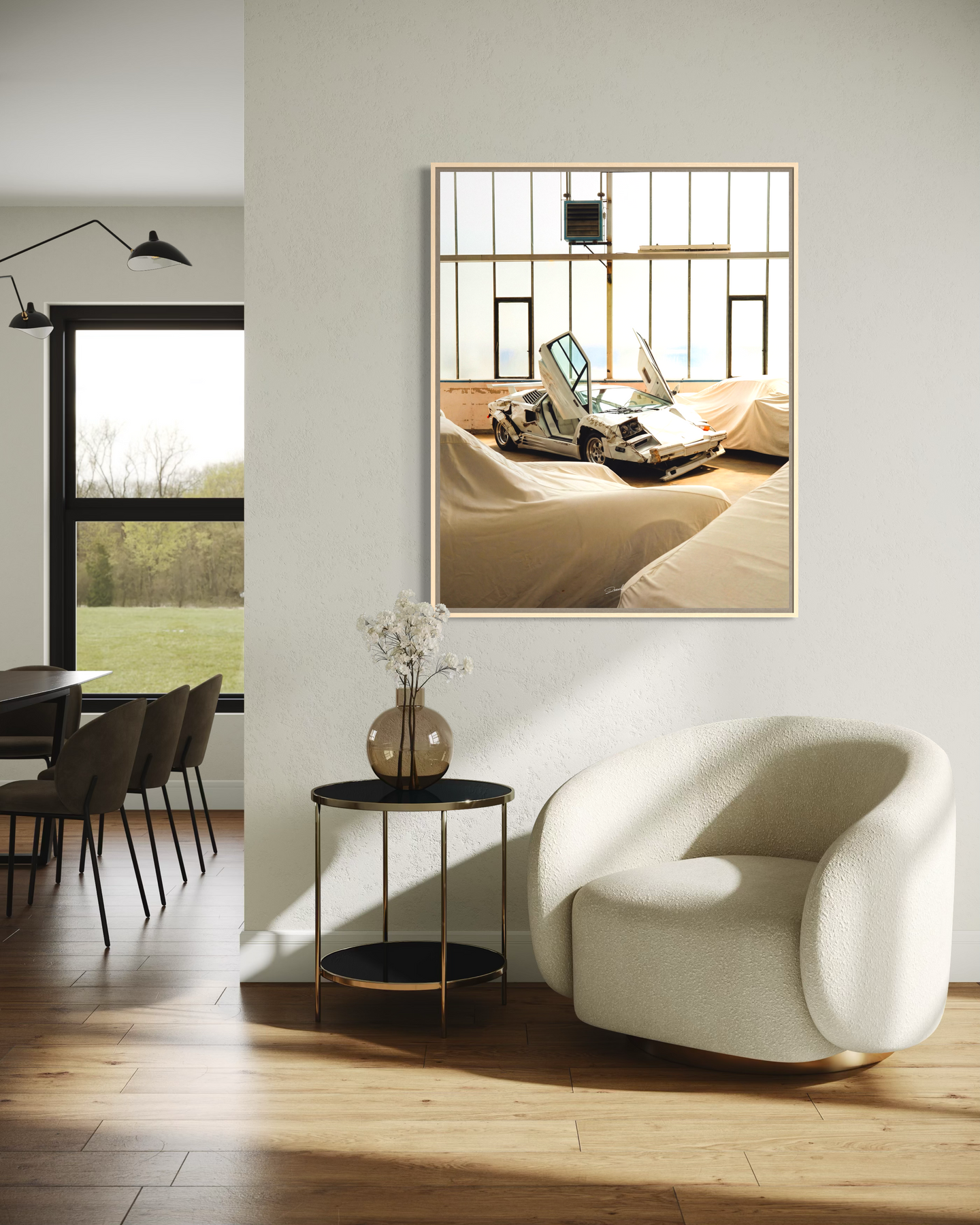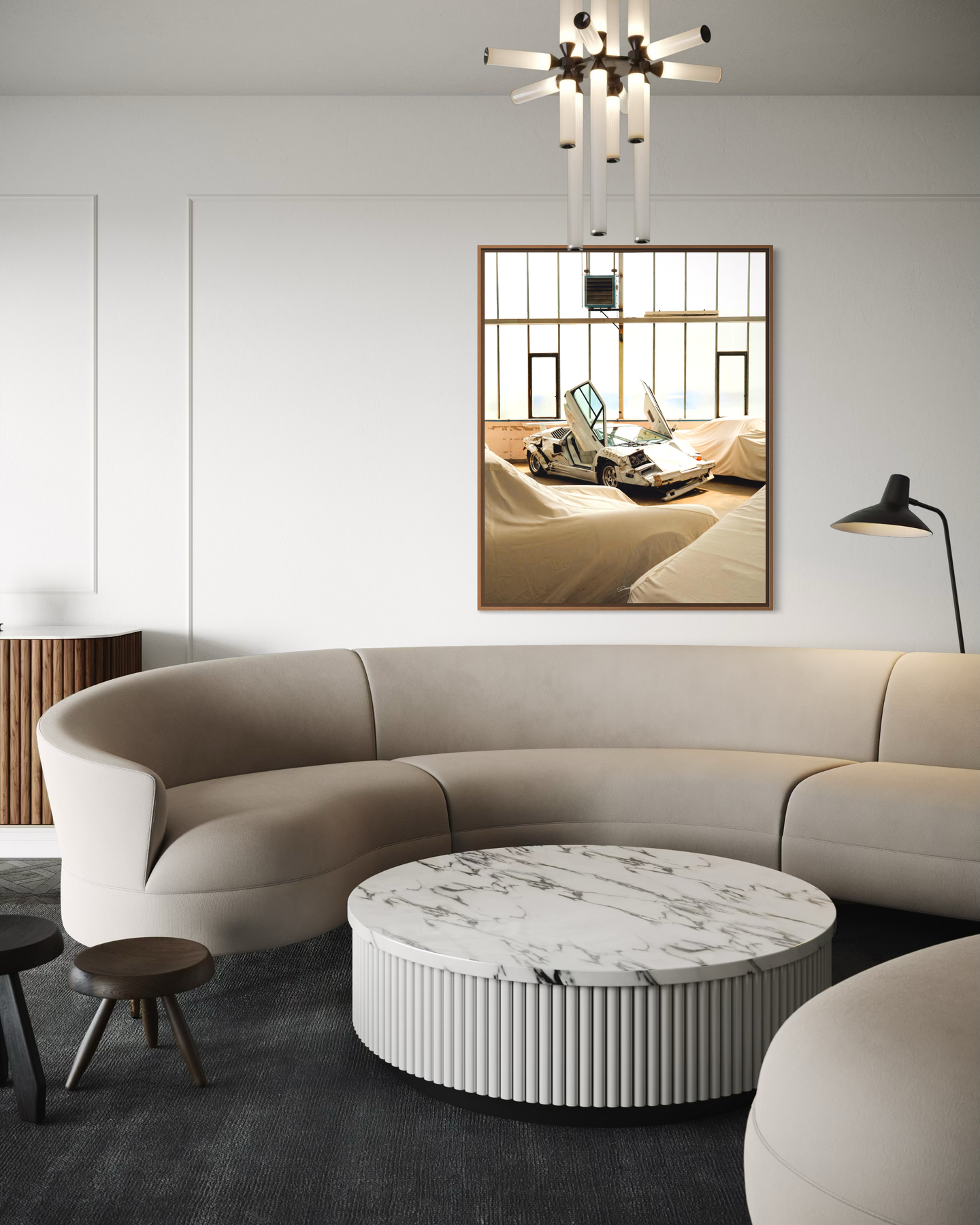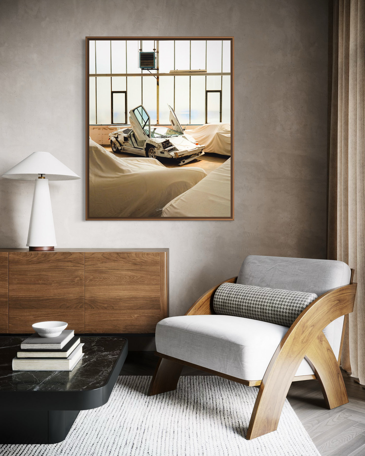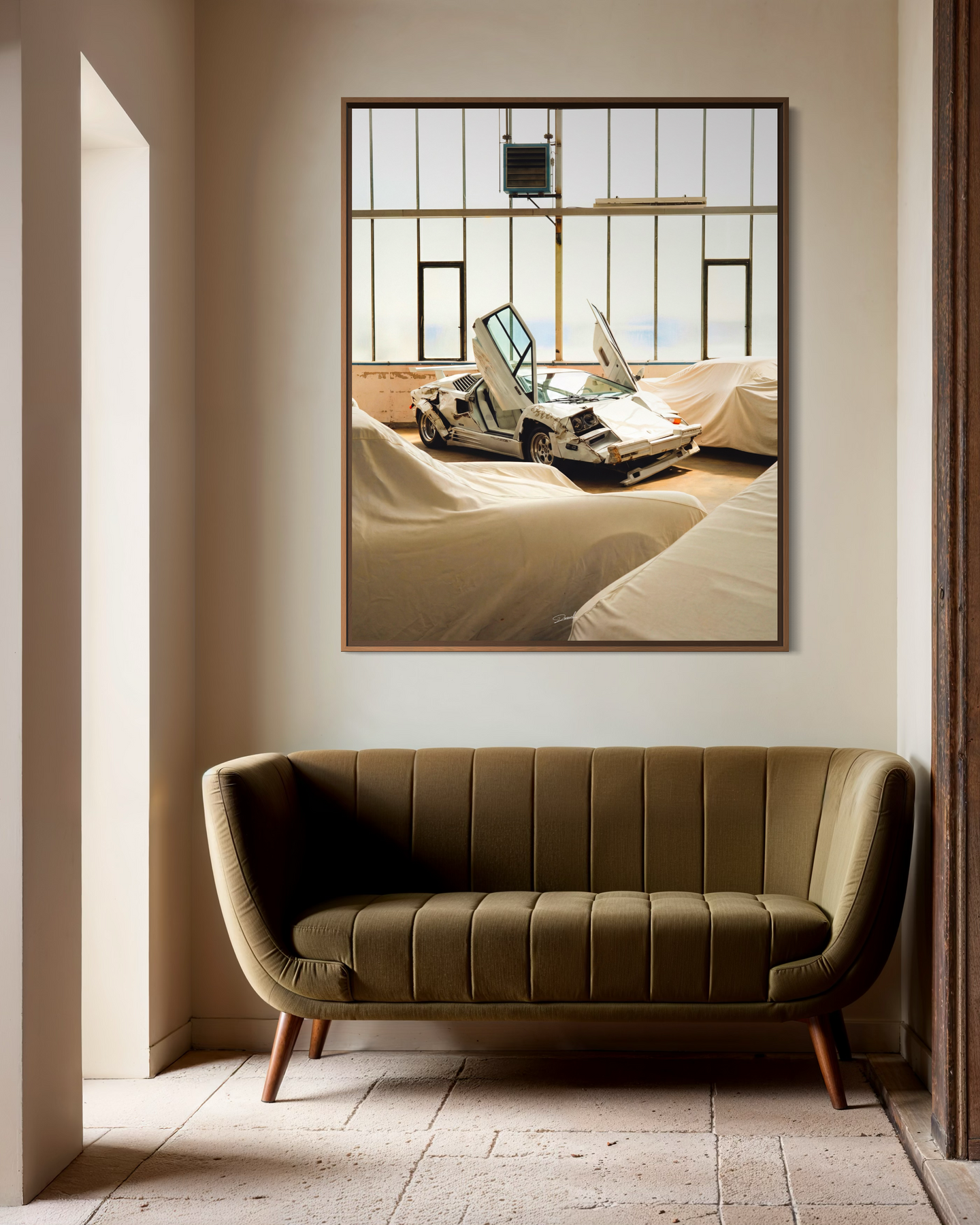 Das Fahrzeug, bekannt als Symbol für Maßlosigkeit und Erfolg, wird hier aus seinem filmischen Kontext gelöst. In der ruhigen Architektur wirkt es nicht mehr laut, sondern fast verletzlich. Die offene Konstruktion verwandelt das Statusobjekt in ein Ausstellungsstück ein Kommentar auf Vergänglichkeit, Inszenierung und die Ästhetik von Reichtum.